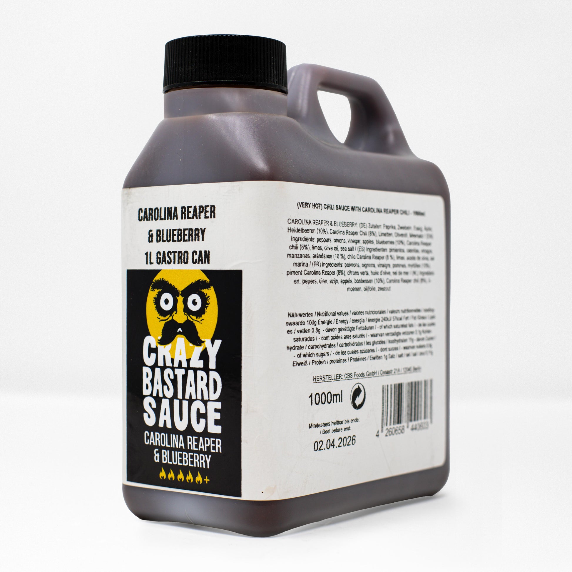 Very hot chili sauce with Carolina Reaper chili and blueberries.
